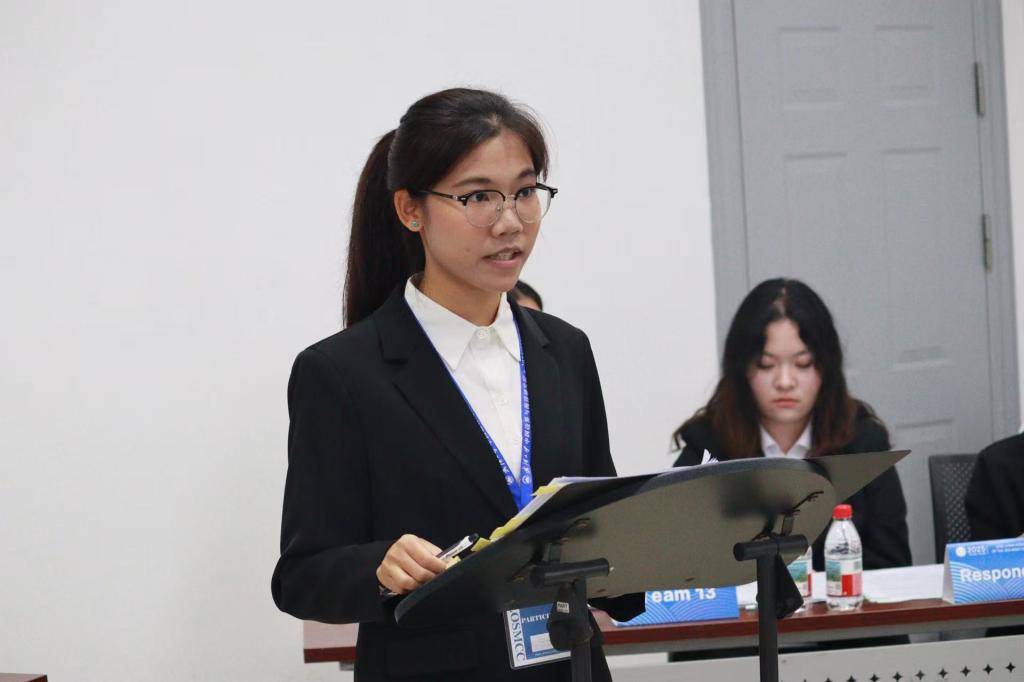 在备受瞩目的口头庭辩环节中,我校代表队先后迎战国际关系学院和天津工业大学。面对来自知名高校的强劲对手,我校庭辩员沉着冷静,展现了极高的专业素养。在与国际关系学院的对决中,队员们针对管辖权争议与海底电缆问题展开了精彩的攻防;在对阵天津工业大学时,我方队员灵活应对法官的犀利提问,逻辑严密、据理力争,充分展现了海大学子扎实的英语功底和敏锐的思辨能力。