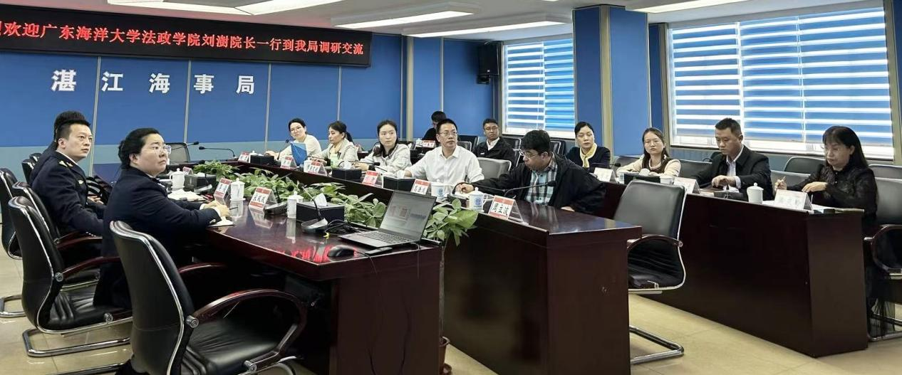 副院长刘澍的带领下,赴湛江市海事局开展调研交流。海洋法与国际法学系主任张艾妮、刑事法学系主任张科、社会学系主任高法成及杨娟、罗余方、孟庆玲、杨柳、胡雪、黄琼等教师参与本次活动。