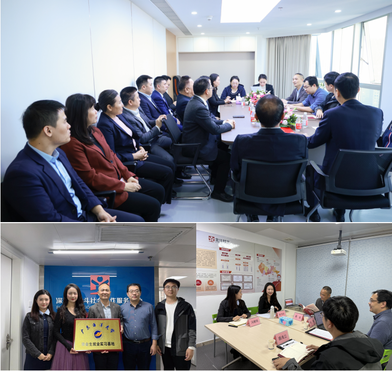 黄善副书记、刘勤副院长一行与深圳市北斗社会工作服务中心相关负责人围绕校企实践合作、人才供需匹配、社会学和社会工作专业学生培养模式、行业未来发展及就业趋势等方面进行了深入交流与探讨。学院还与深圳市北斗社会工作服务中心签订了合作协议,正式确立其为毕业生就业实习基地,为我院社会学毕业生争取优质的就业和实习机会。
